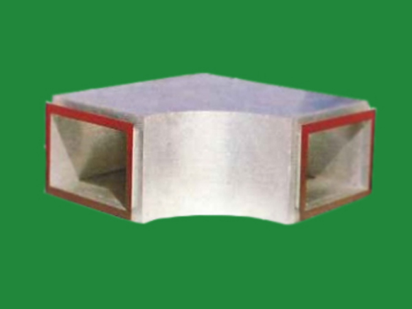 • 弯头为外角内圆型式,内装短弦导风片,故压力损失小,对消声最有力。
